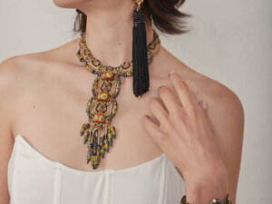 Antiche perle in vetro si fondono con il macramè per trasportare nella contemporaneità la storia di Venezia e del suo patrimonio artistico e culturale.